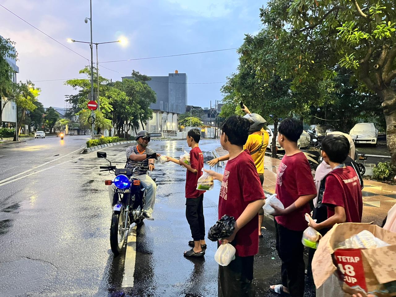Hujan Tak Menyurutkan Semangat, Alumni SDMUDA Surabaya Bagikan 300 Paket Takjil di Gemblongan