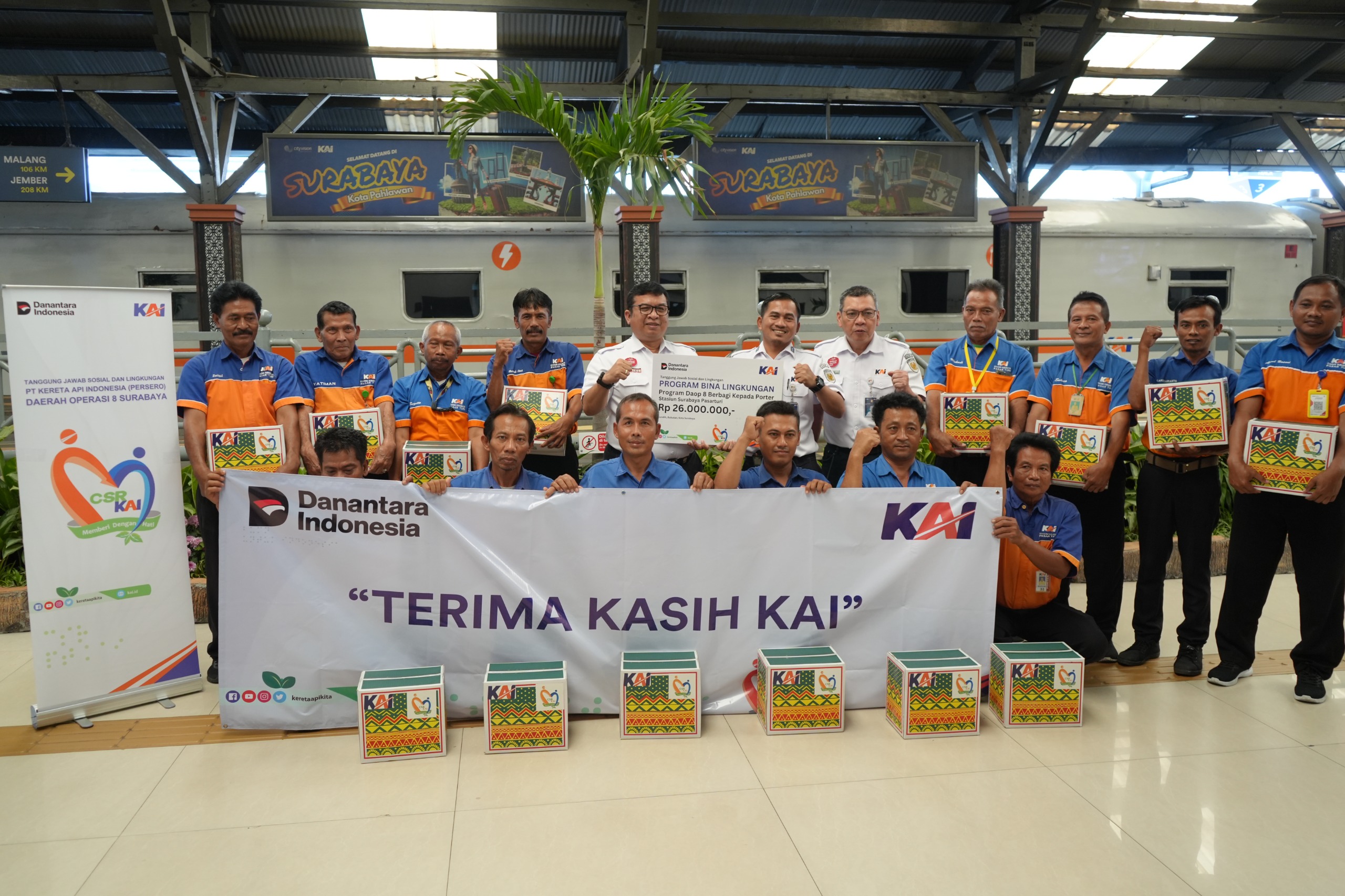 Penyaluran bantuan ini dilakukan melalui program Tanggung Jawab Sosial dan Lingkungan (TJSL) pada Selasa (17/3). Penyerahan secara simbolis dilakukan oleh Komisaris PT KAI, Diah Natalisa, didampingi Executive Vice President KAI Daop 8 Surabaya, Daniel Johannes Hutabarat, di Stasiun Surabaya Gubeng dan Surabaya Pasarturi.